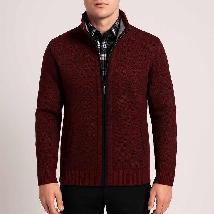 Men's - Knitted Zip-Up Cardigan - Plaid Lining