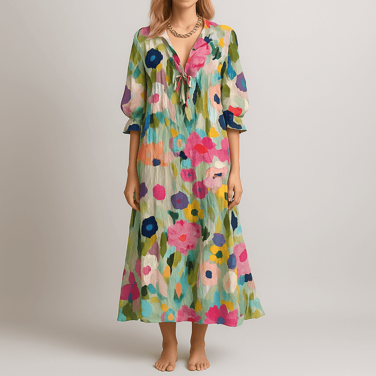 Women's - Boho V-Neck Maxi Dress - Stylish & Flowing