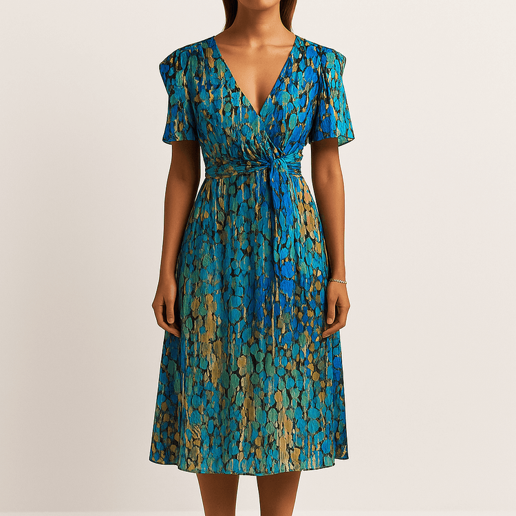 Women's - Elegant Floral Midi Dress - Lightweight & Stylish