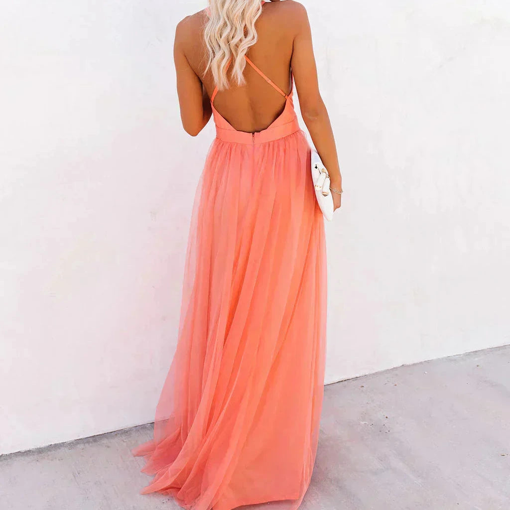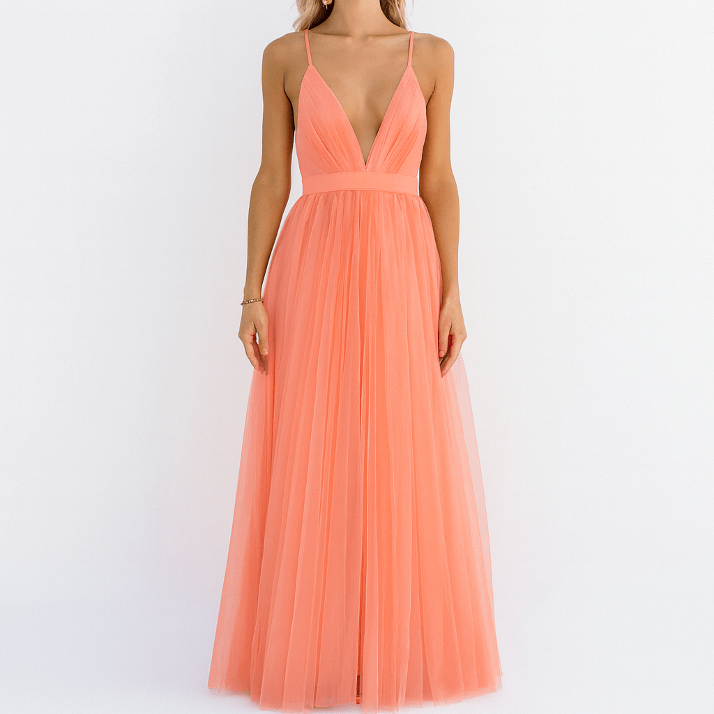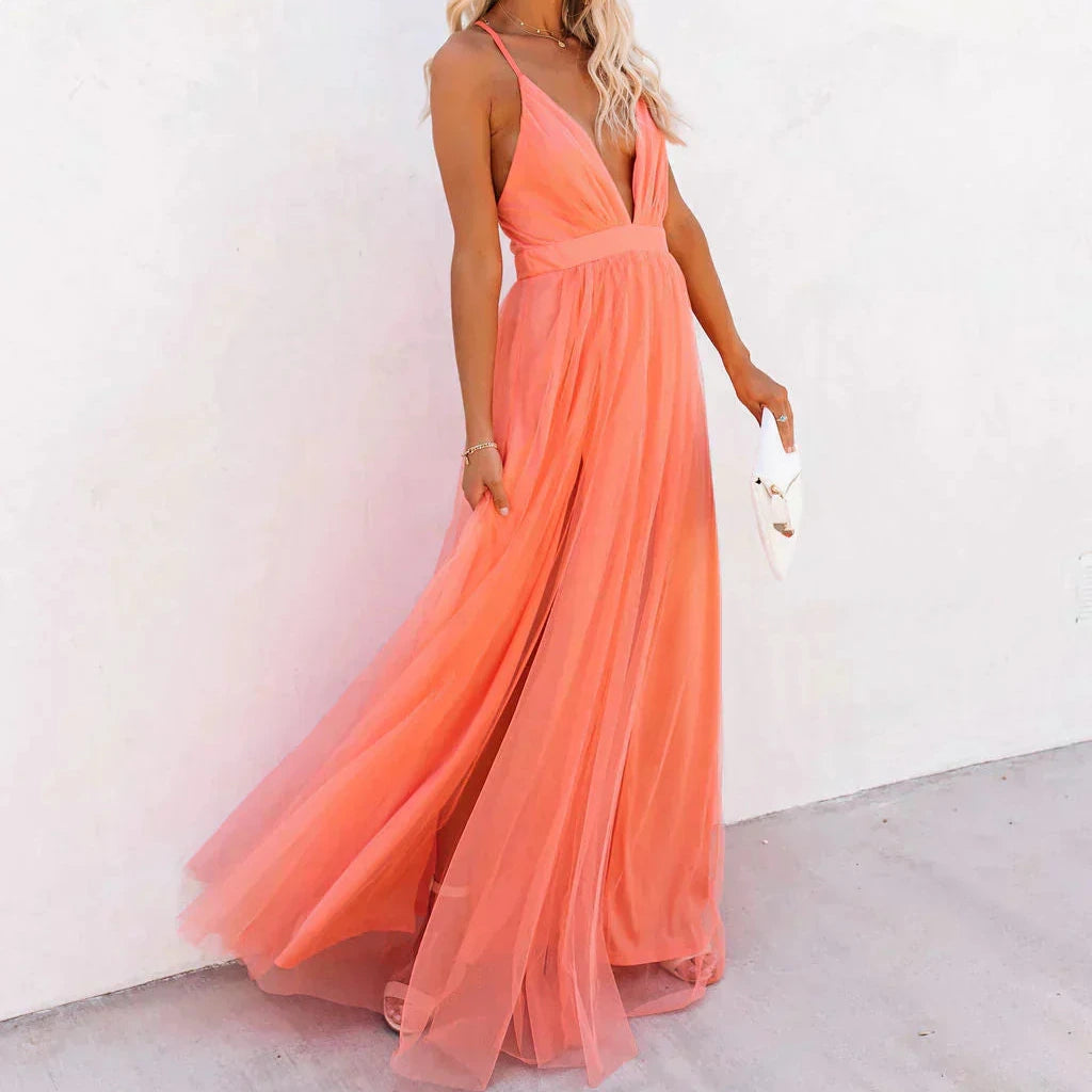 Women's - Long V-Neck Chiffon Dress - Elegant Style