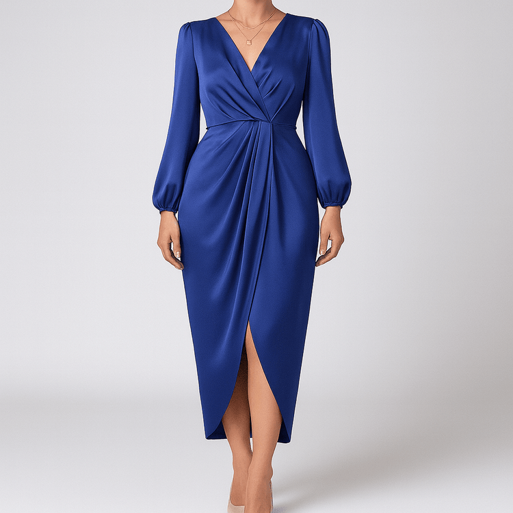 Women's - Ruched Long Sleeve Dress - Formal Wear