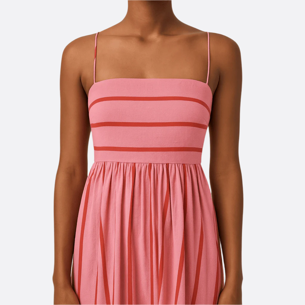 Women's – Striped Summer Dress – High Waist Fit