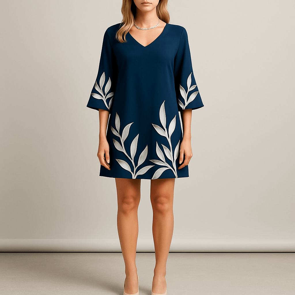 Women's - V-Neck Ruffle Sleeve Dress - Elegant Style